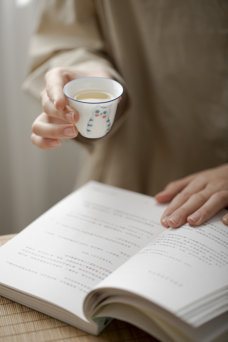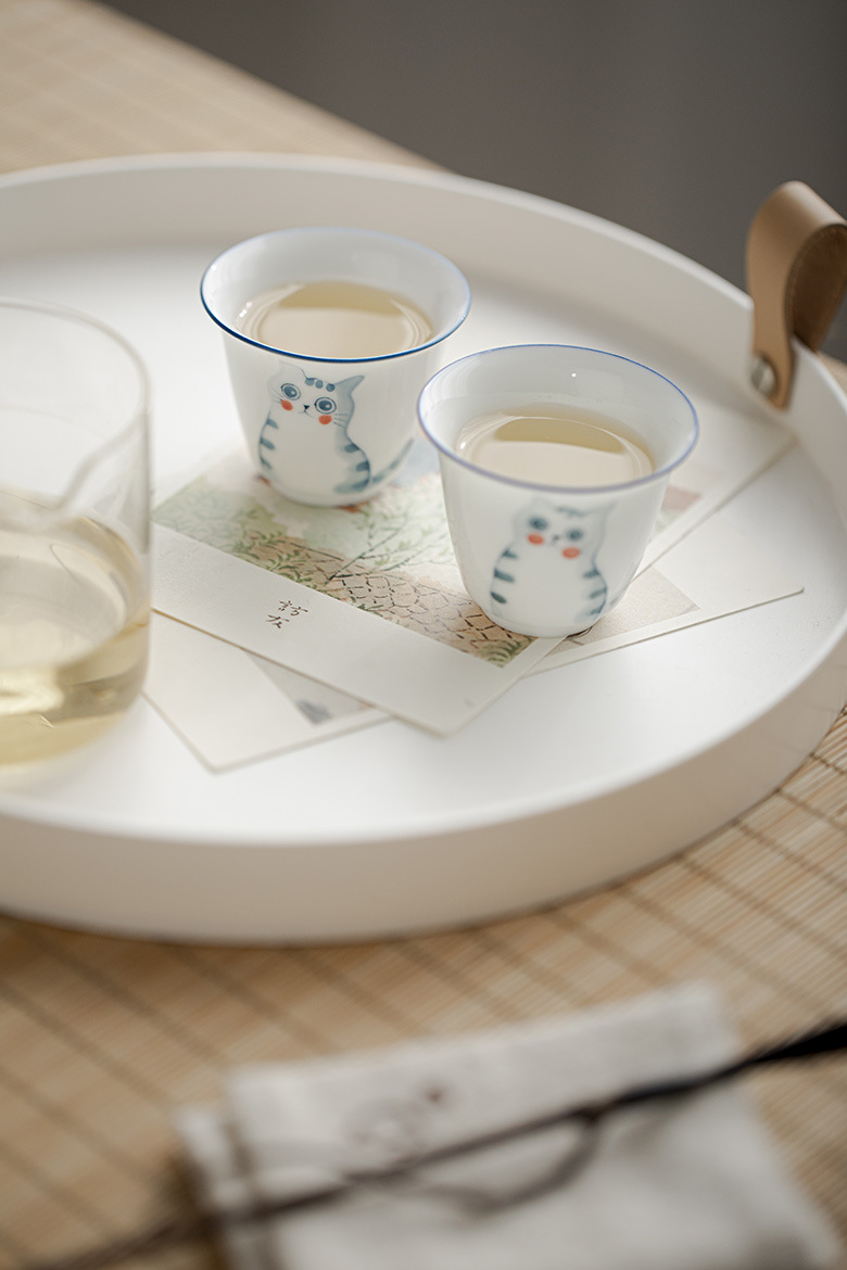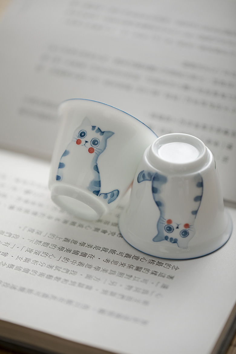 墨己万物かわいい手描き猫桃品茗杯工夫茶器家庭用暖かい癒し陶磁器カップ