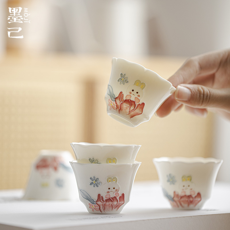 墨己玉泥白磁手描き萌え兎品茗杯カンフー茶器お茶を飲む一杯の小さいコップのかわいい風陶磁器のコップ