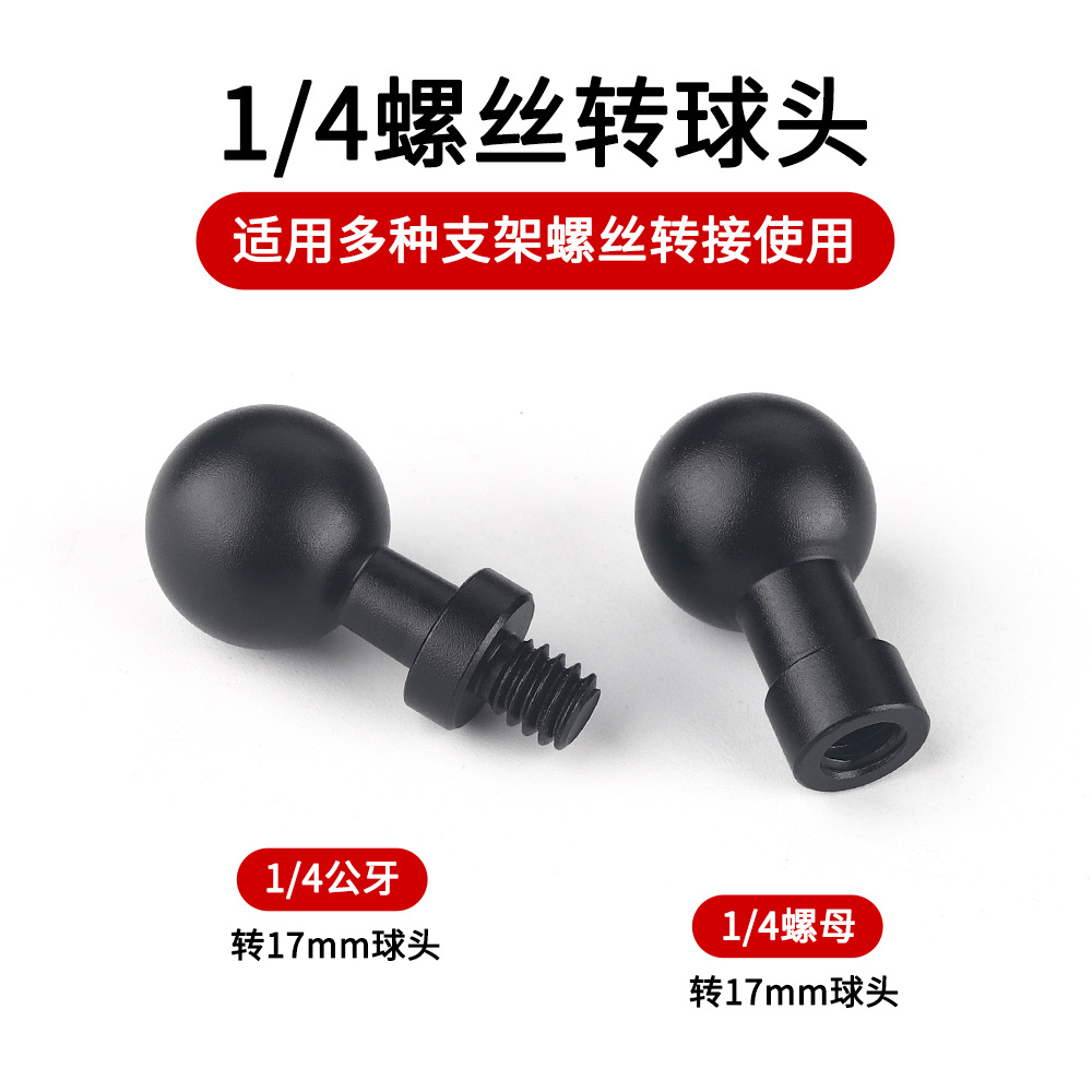 17mm球头母座转1/4万向双公螺丝头转换接头手机支架运动相机配件