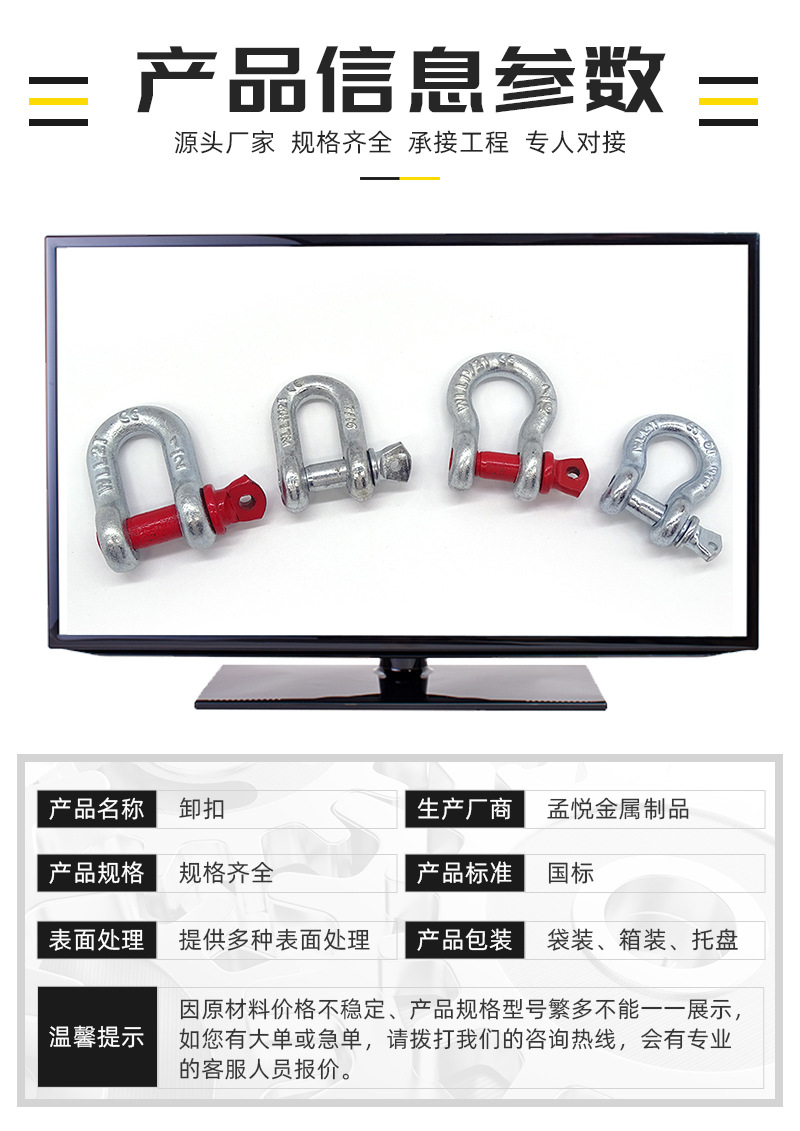 メーカー卸売国家標準弓型シャックルD型アメリカンシャックルリフティングシャックルフック高強度シャックル