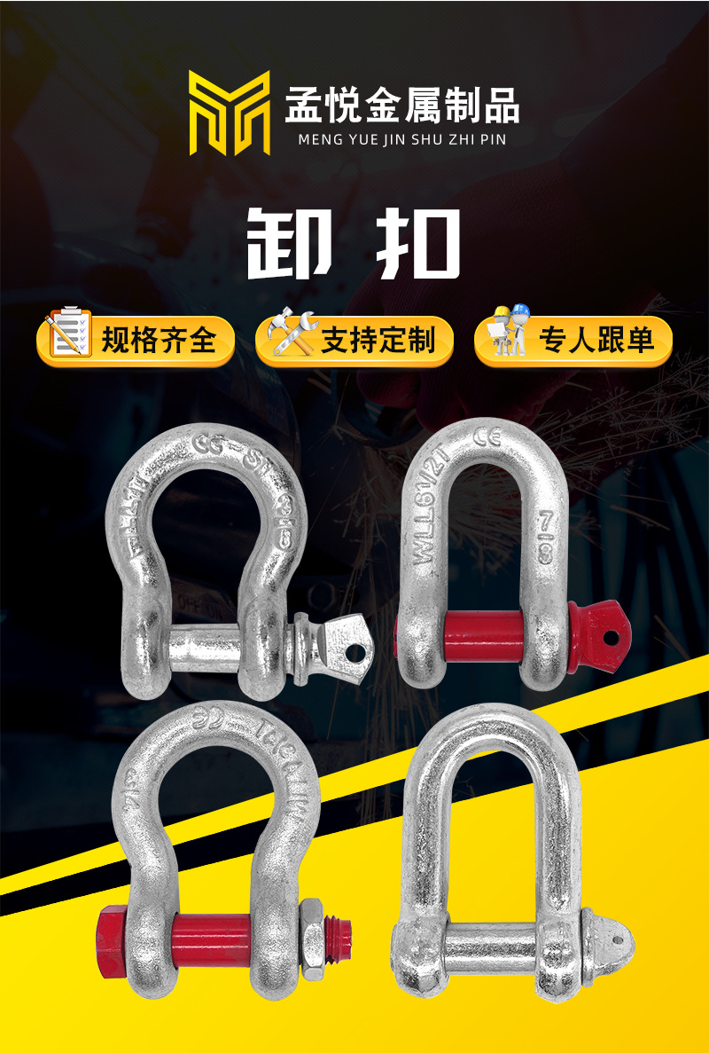 D型卸扣 起重卸扣 拖车勾救援车钩车辆牵引 跨境热销工厂弓型卸扣