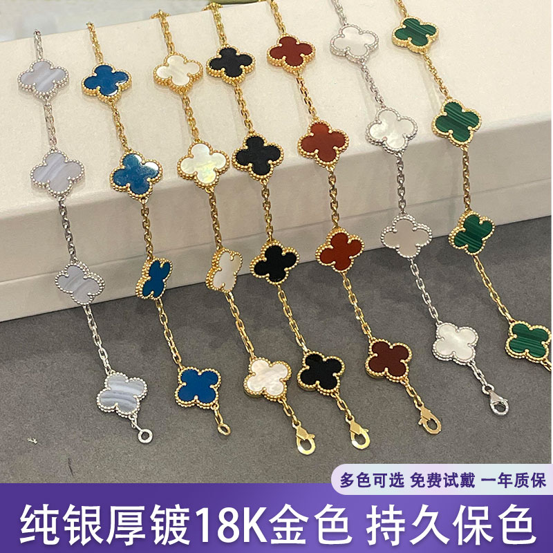 幸运高级百搭纯银幸运草手链轻奢厚镀18K白金镭射间钻手链女