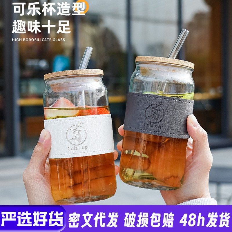 インターネット有名人竹カップインスタイルストローコーヒーカップショップお祝い排水広告ギフトガラスウォーターカッププリントロゴ
