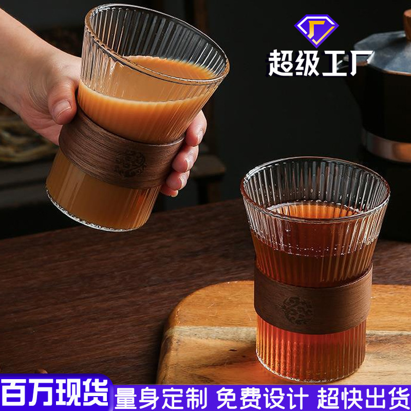 日本式縦紋耐熱ガラスコップ泡カップ手沖耳コーヒーカップ高颜値筋紋断熱カップ