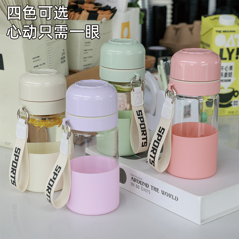新しい熱傷防止茶水分離ガラスカップ、ワンクリックで蓋を開けるウォーターカップ、プリントされたハンディカップ、見栄えの良いビジネスギフトカップ
