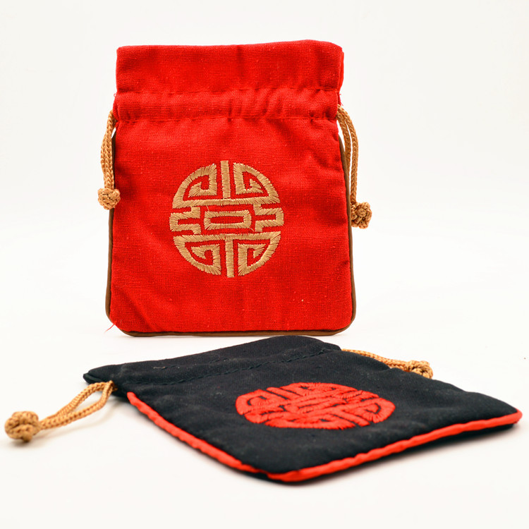 麻の袋の錦の袋のお茶は口の宝石のアクセサリーの袋の復古の福の字の両面の刺繍の仏の玉の皿の神器を結びます。