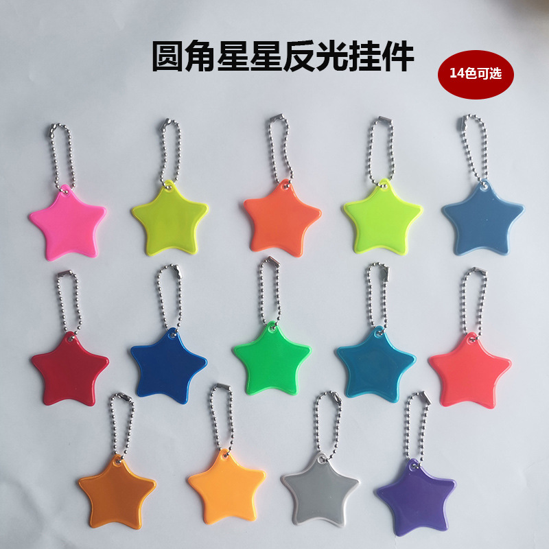 クロスボーダー熱売pvc反射ペンダント五芒星キーホルダー星蛍光反射器夜間安全ペンダント
