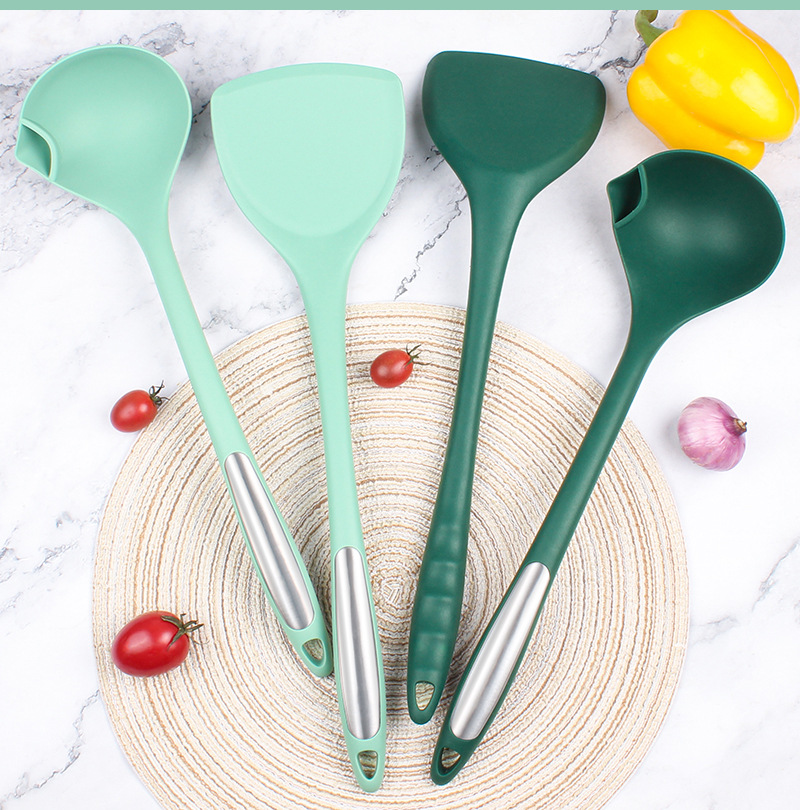 国境を越えたシリコン製鍋用スパチュラとスープスプーン、耐熱調理器具セット、キッチン用ノンスティック鍋専用一体型スパチュラとスプーン、卸売販売