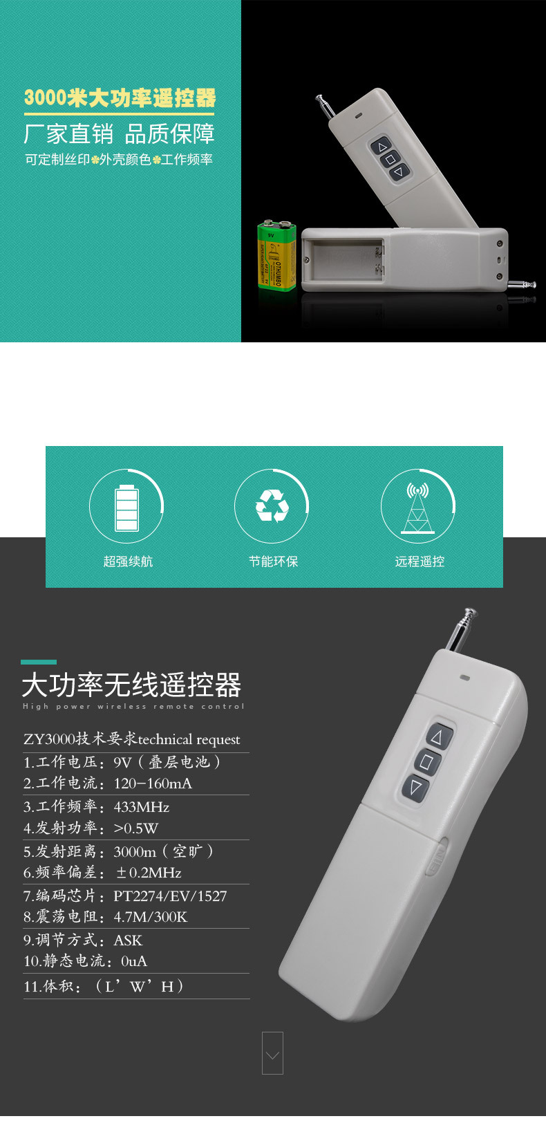 接收频率:315MHZ/433MHZ(其它频率可定制)