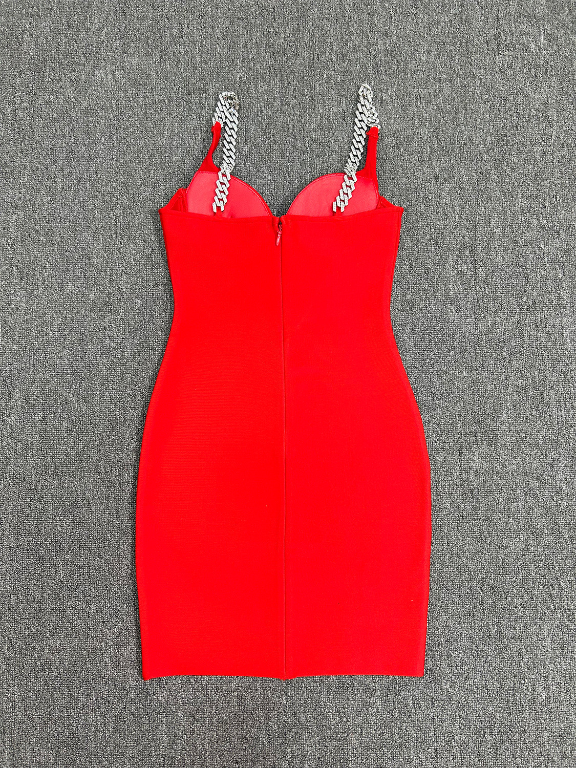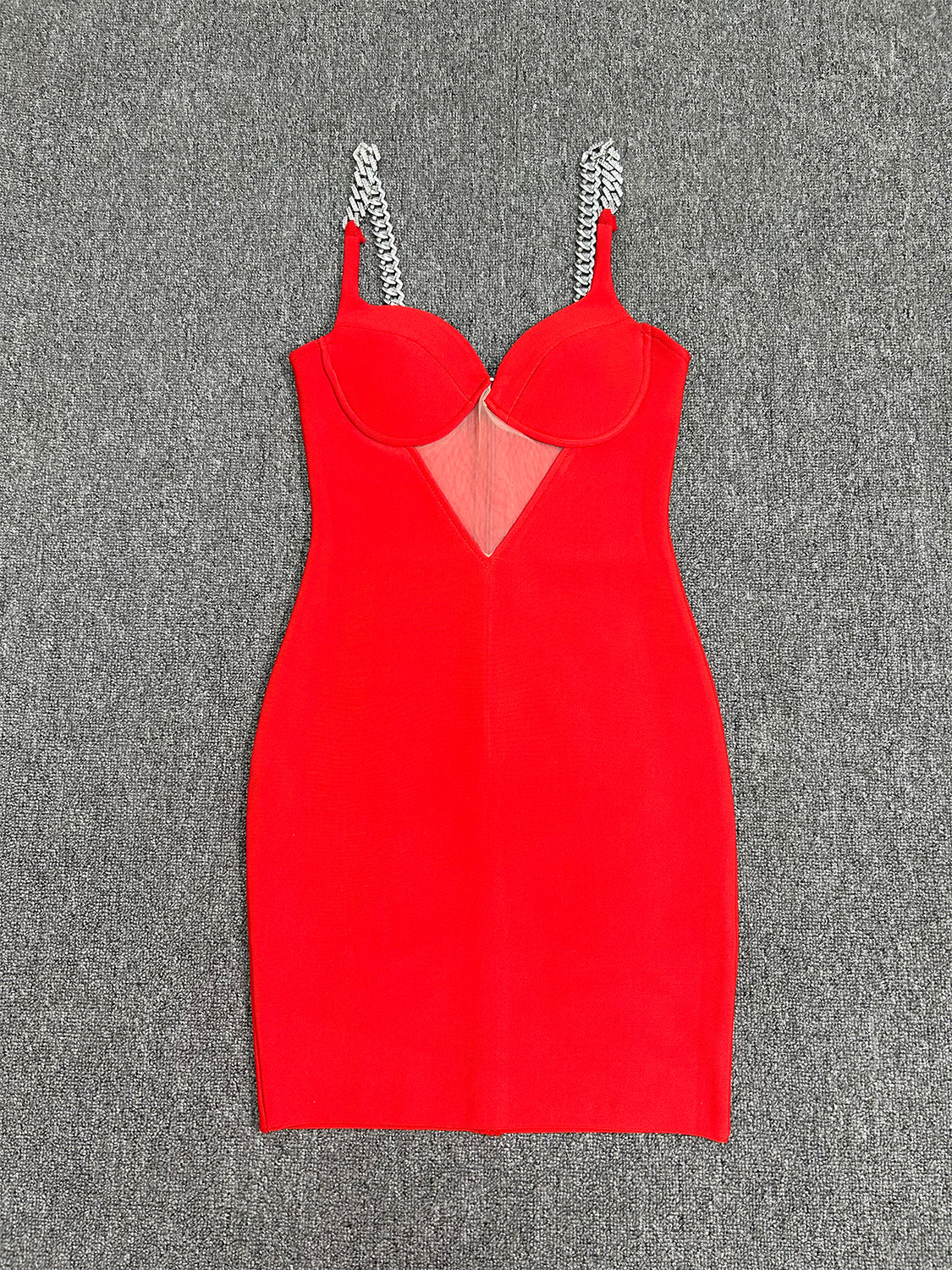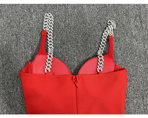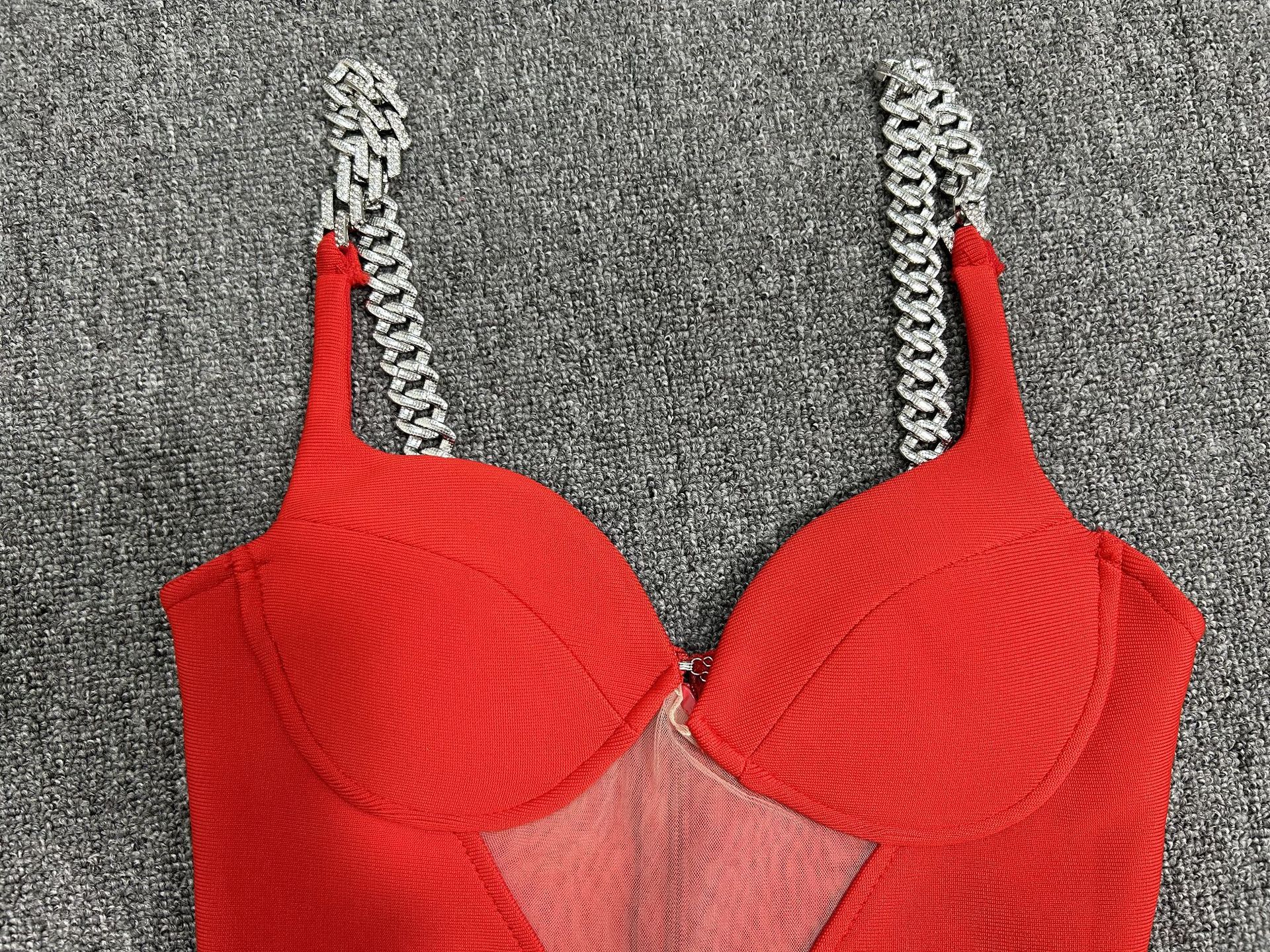 欧米の国境を越えて爆発したチェーンストラップのセクシーな透かし彫りネットのドレスの赤い包帯のスカートのスカートの工場
