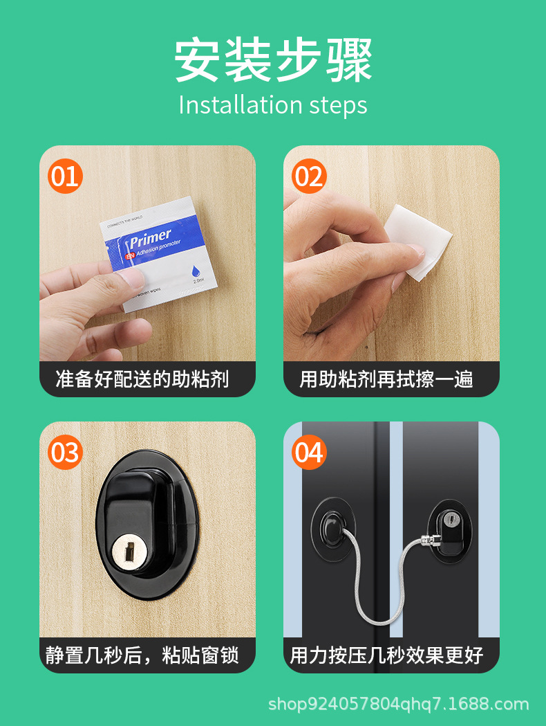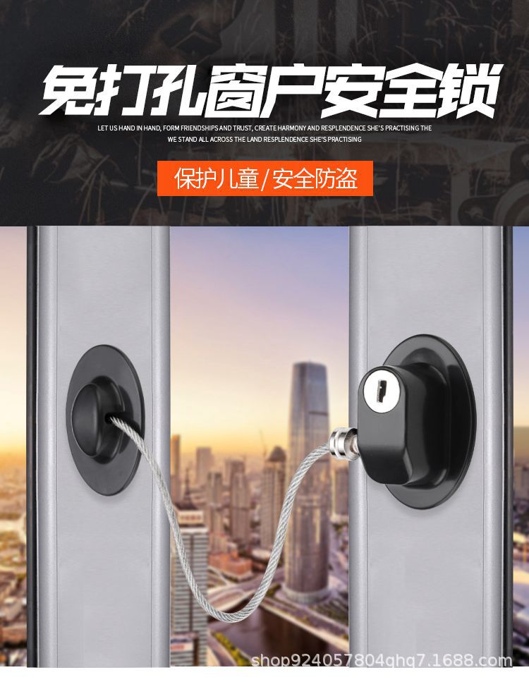 免打孔锁防盗窗户限位器儿童带锁限位器窗户锁扣儿童门窗安全锁