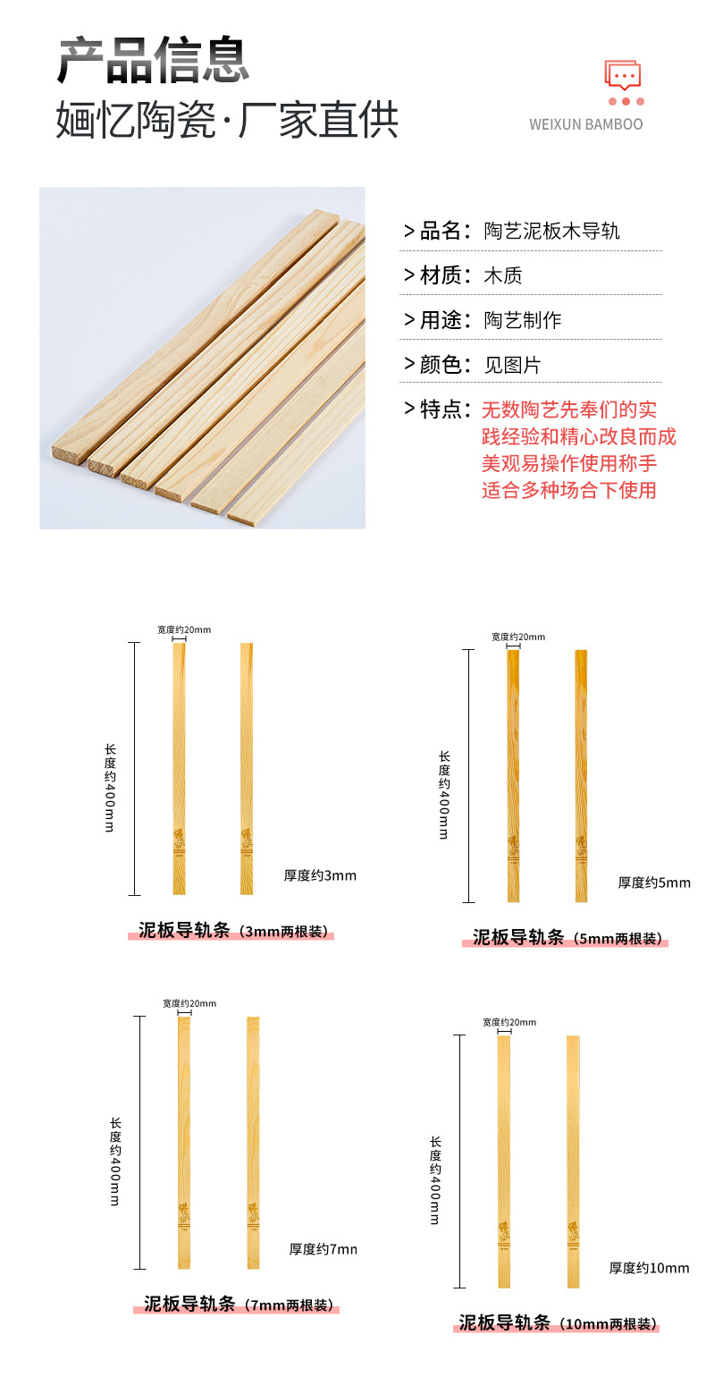 陶芸泥板レール松木条木尺1cm厚陶芸工具「泥板切断工具実木レール」