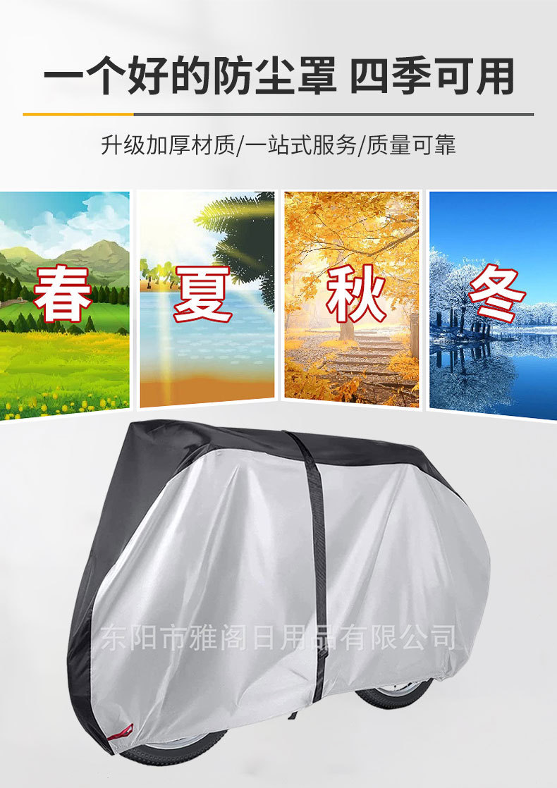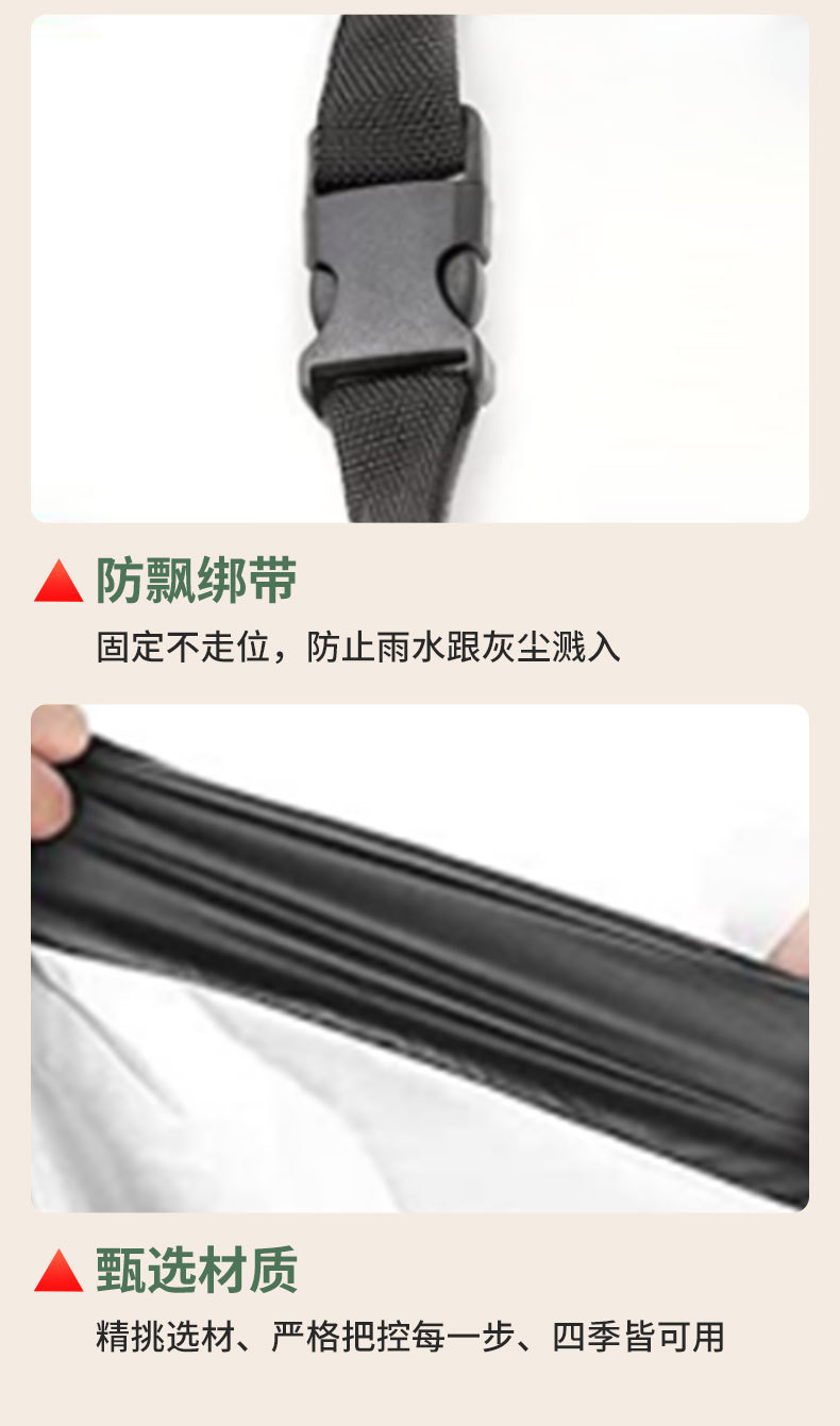 实用设计: 外部自行车罩,前轮区域有锁孔设计,允许使用带盖子的自行车锁,防止自行车被盗。 底部双线缝合弹性下摆和特殊设计的带扣紧密贴合,在大风天气下保持*。
