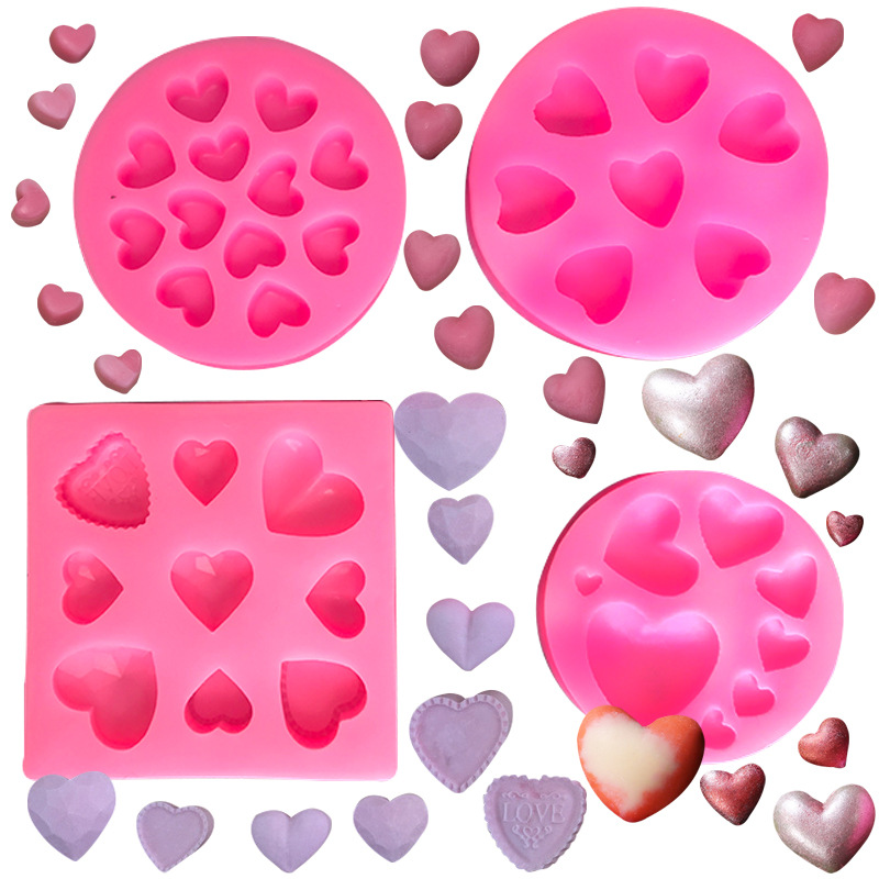 複数の立体愛の砂糖をひっくり返してケーキを飾ってチョコレートの型の石膏の香薫の陶泥の粘土の滴のゴムの愛の型を飾ります。