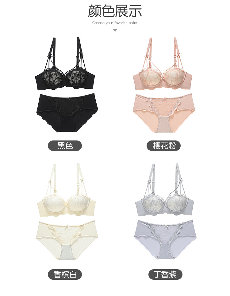 六只兔子小怪瘦内衣女大胸显小轻薄显瘦法式三角杯蕾丝小可爱套装