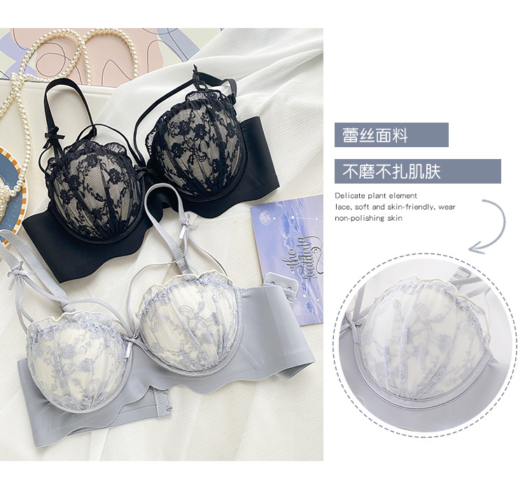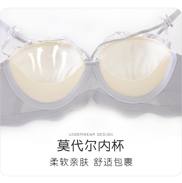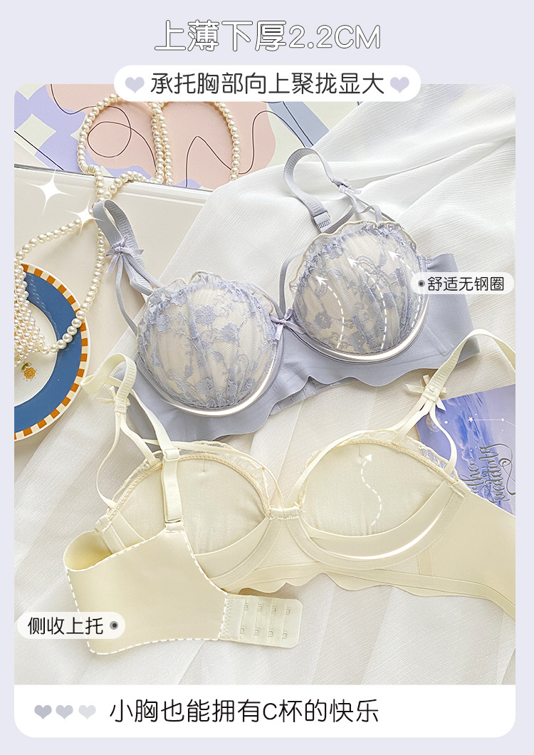 六只兔子小聚蛋内衣女小胸聚拢显大蕾丝收副乳无钢圈甜美聚拢内衣