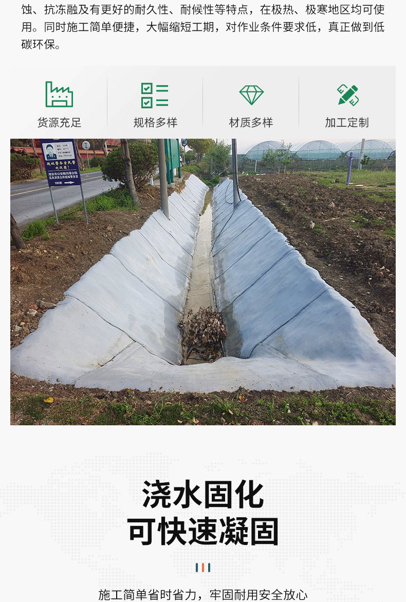 セメントブランケットメーカー 水路 川 山体 魚池 坡面保護 コンクリート繊維ブランケット 水やり硬化 新型セメントブランケット