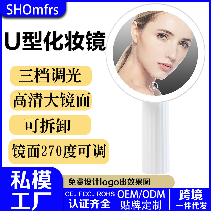 クロスボーダー知能美化粧鏡ベース付き縦型補光取り外し可能日光鏡充電手持ちled化粧鏡