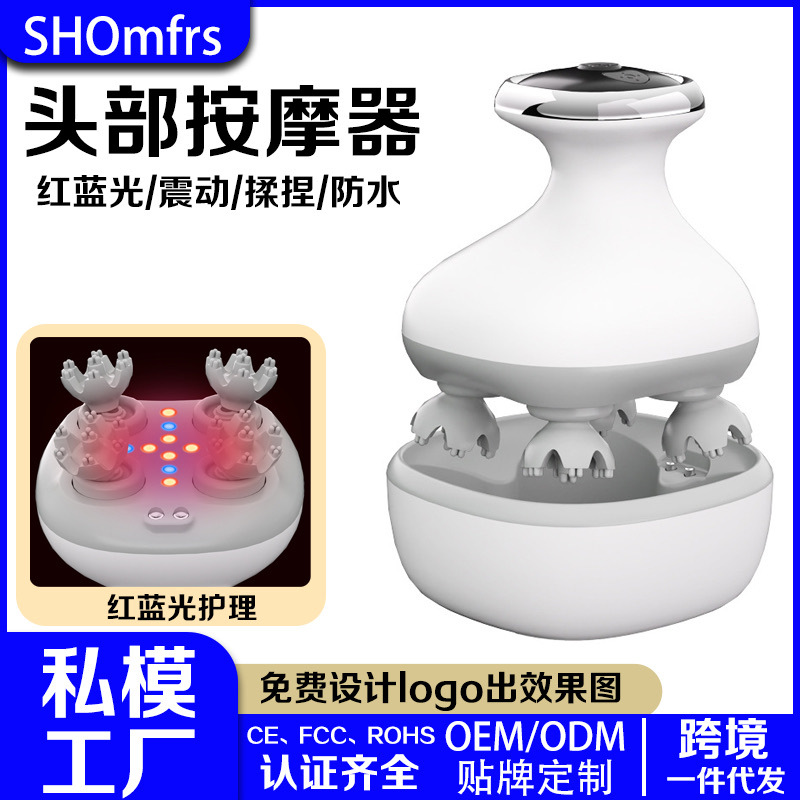 新款EMS微电流头部按摩仪 红蓝光电动揉捏震动防水头皮头部按摩器