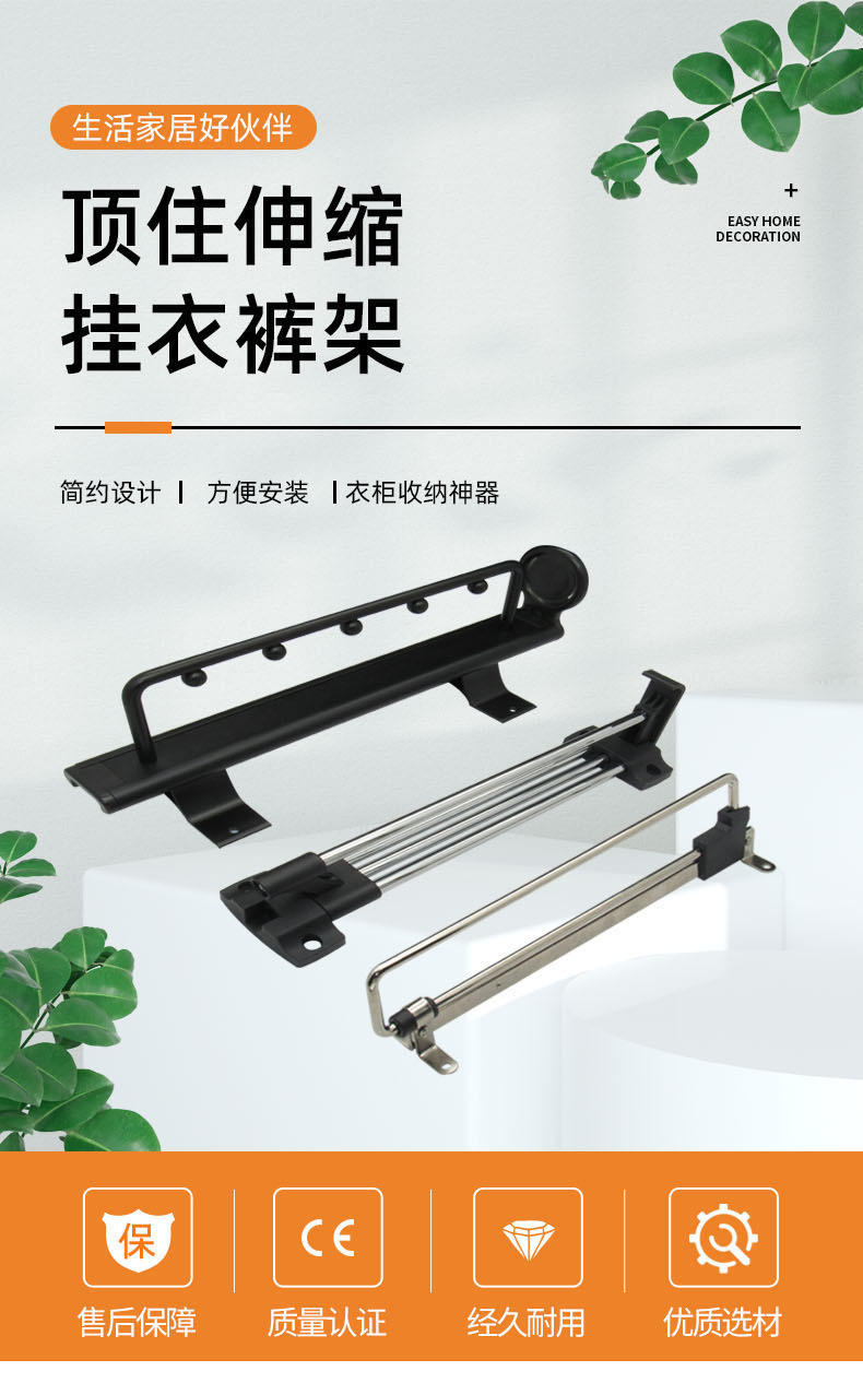 跨境批发挂衣器衣柜挂衣杆顶装衣橱衣柜里横杆内抽拉裤架伸缩滑轨