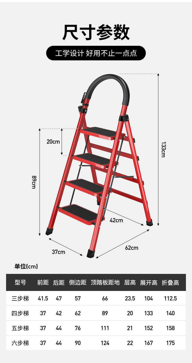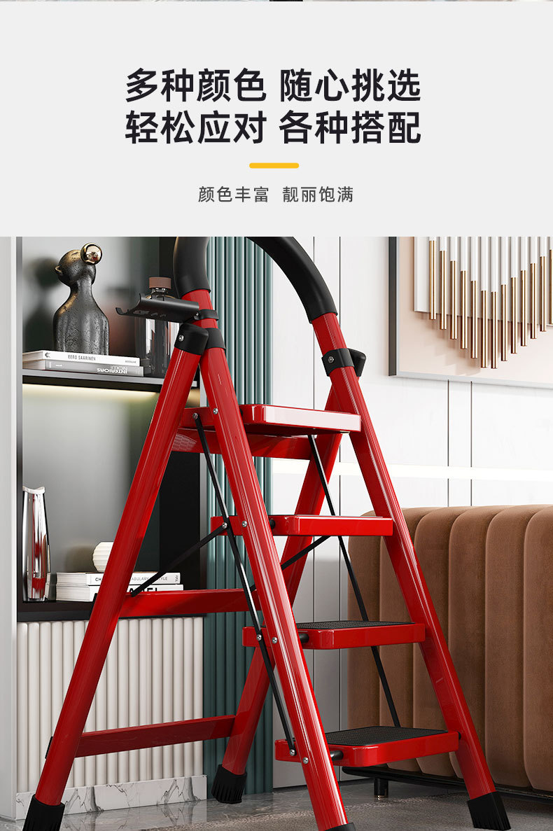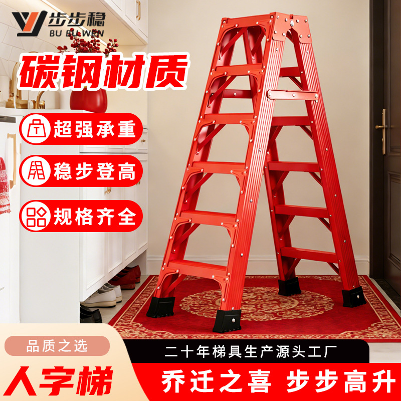 迁乔梯子家用人字梯加厚折叠铝合金家庭专用爬梯步步高升红色楼梯