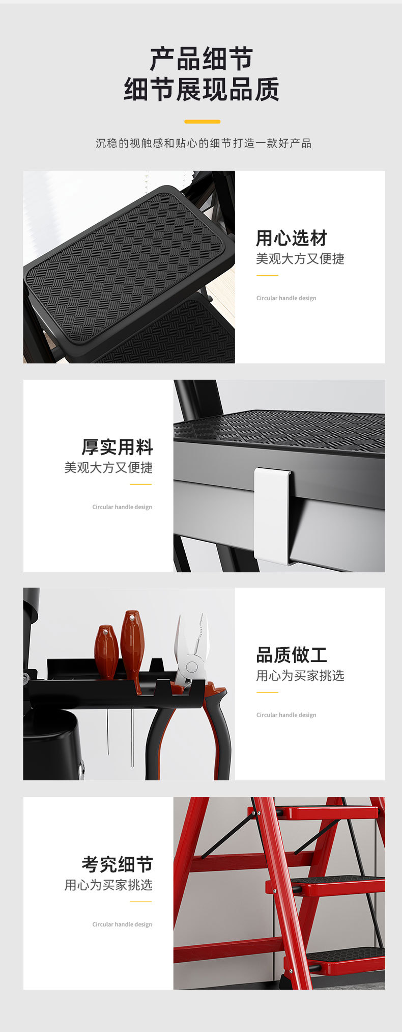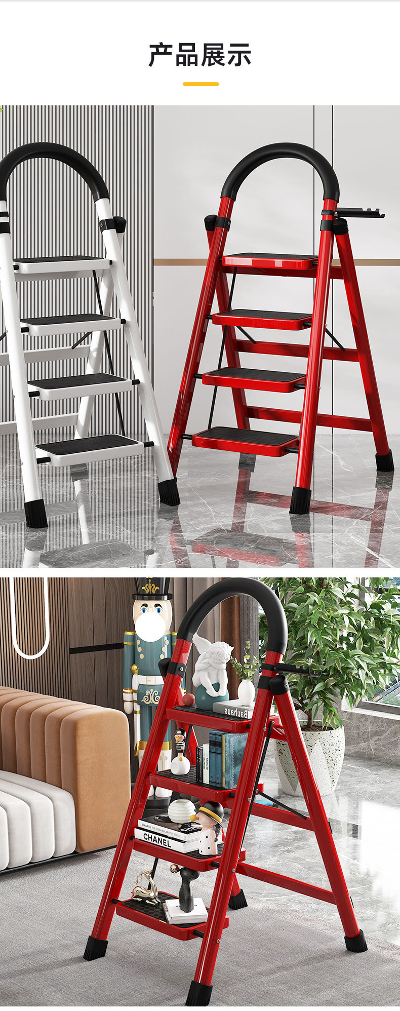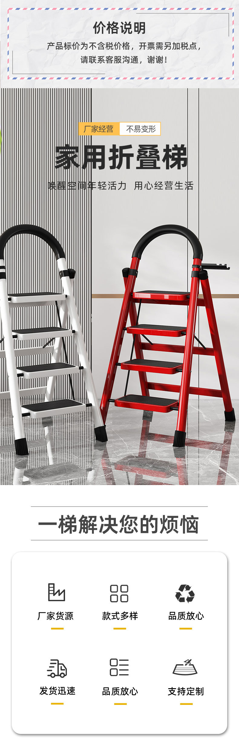 迁乔梯子家用人字梯加厚折叠铝合金家庭专用爬梯步步高升红色楼梯