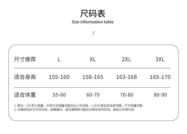 サイズ L体重110 ~ 120斤,Xl体重120 ~ 140斤,Xxxl体重160 ~ 180斤