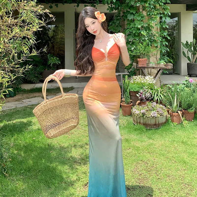 泳衣女款长裙两件套网纱吊带气质修身显瘦度假纯欲沙滩泡温泉泳装