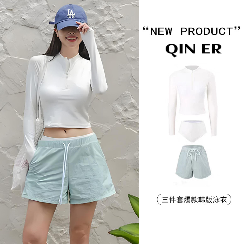 泳衣女款分体三件套长袖韩版运动简约休闲学生显瘦泡温泉泳衣批发