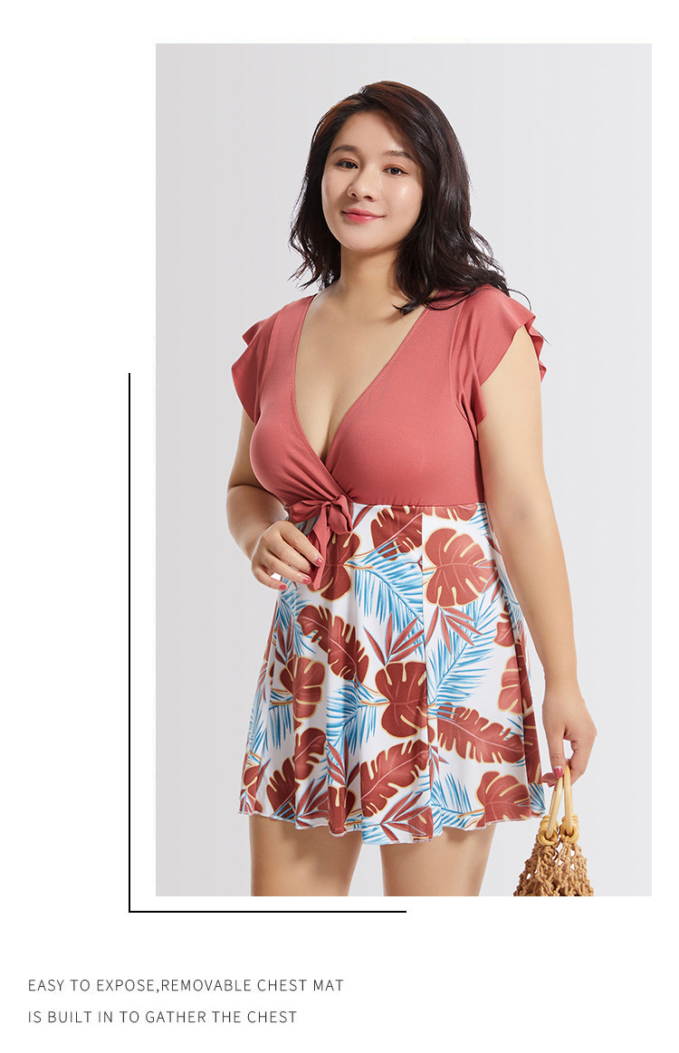 大きいサイズの水着、女性用温泉水着、新しい夏のファッショナブルなプリント、控えめなボクサーパンツ、ゆったりとした太った女性用水着