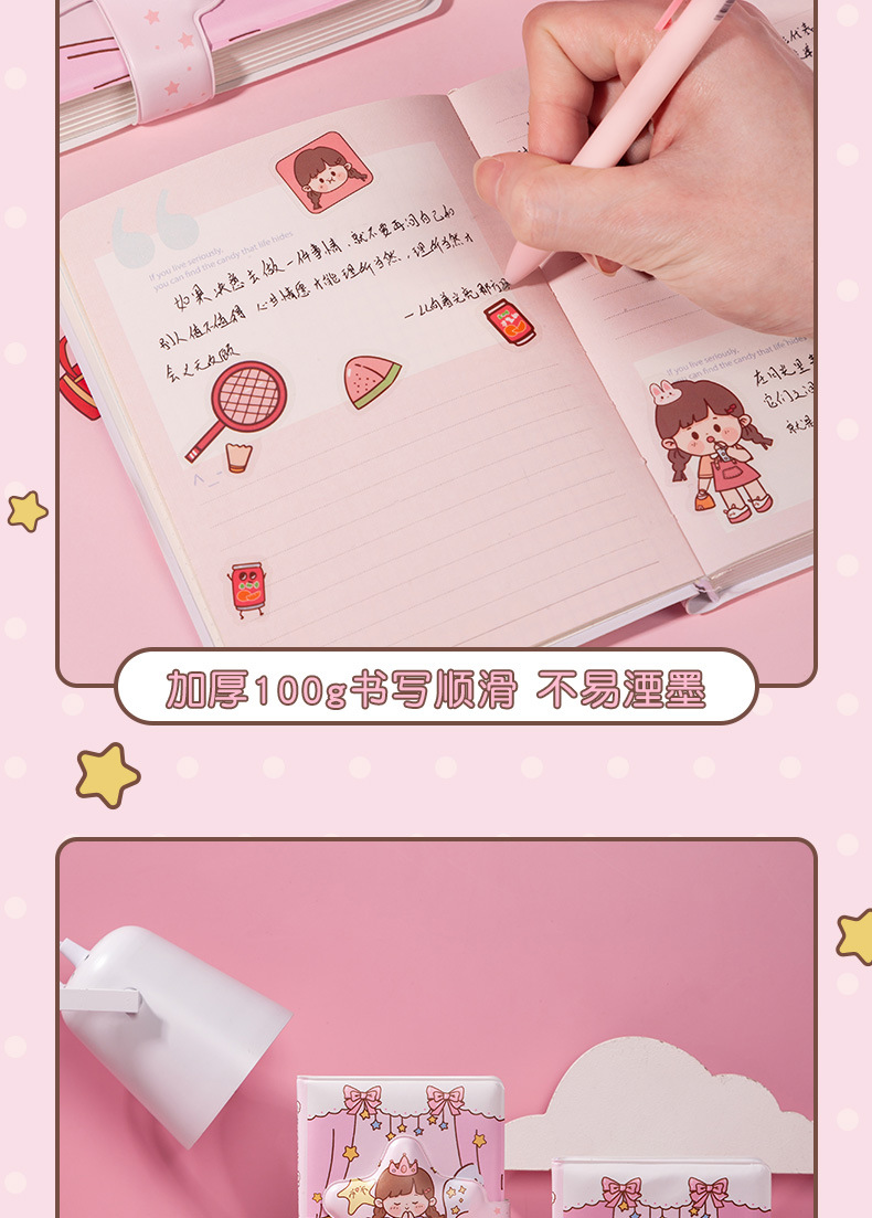 月夜の魔法の本の日記の学生のノートは手帳を厚くします。