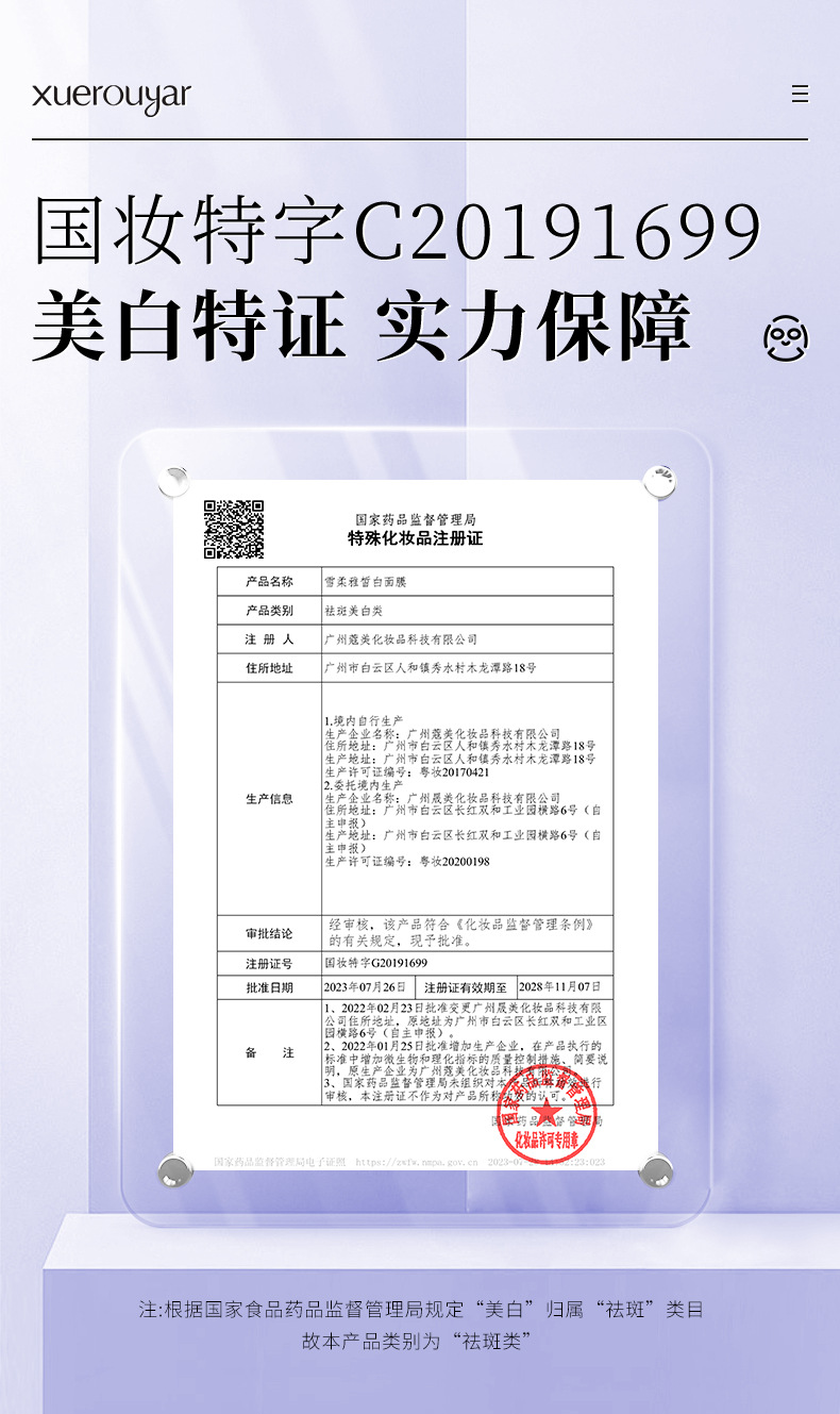 特殊メイク商品名 雪のように柔らかな美白マスク