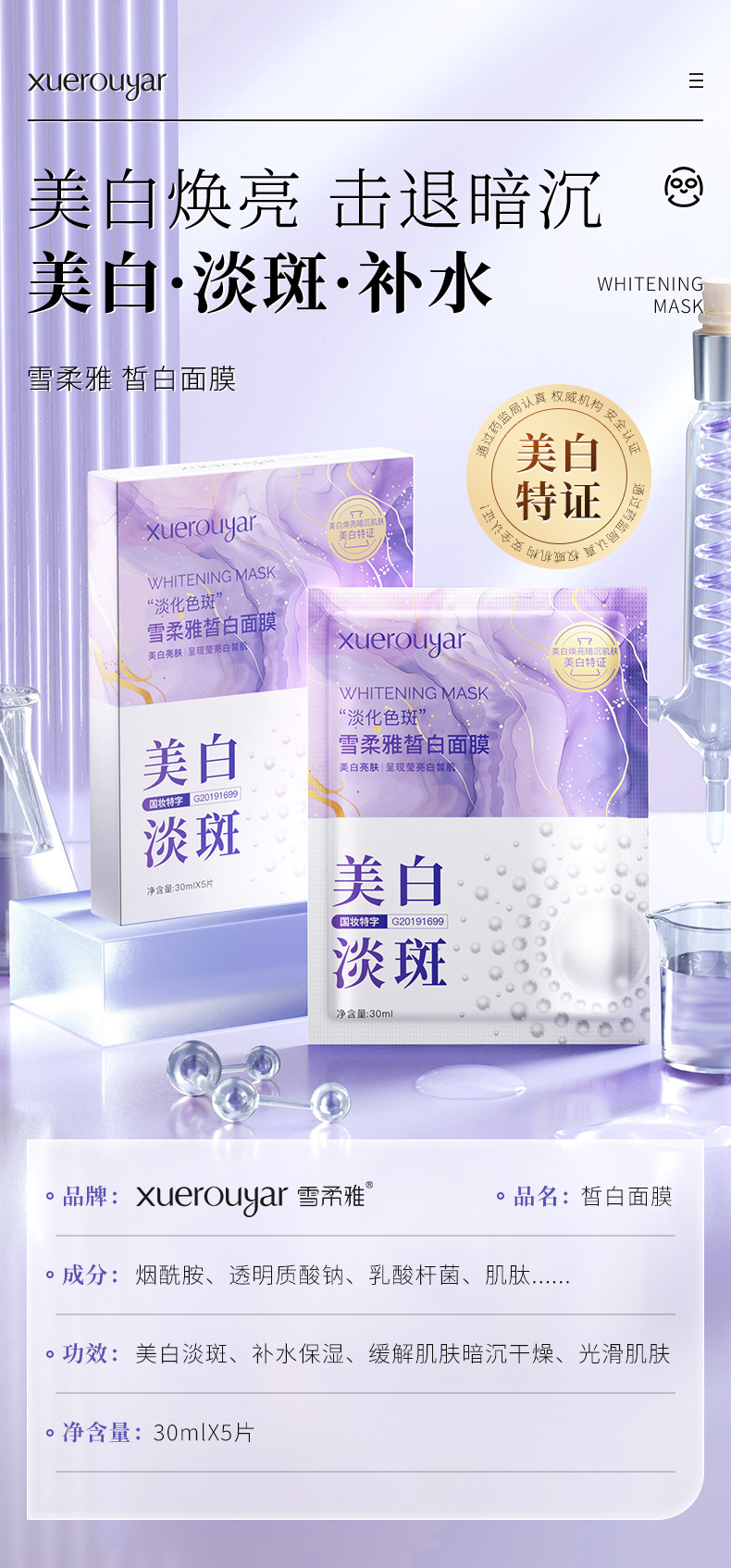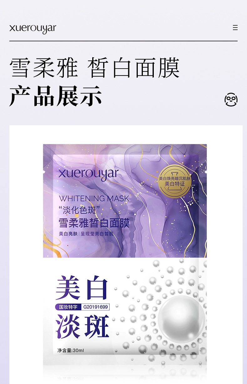 製品名1 雪柔雅白マスク (真珠) (一枚入) 30ml雪柔雅白マスク (真珠) 5枚/箱30ml * 5枚