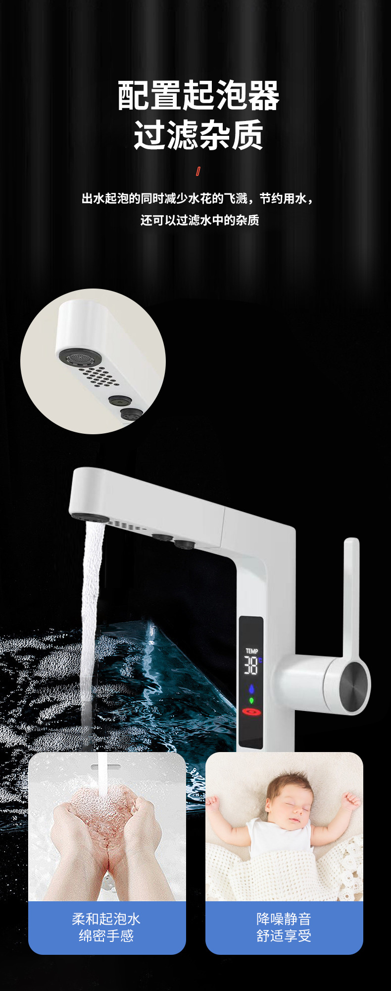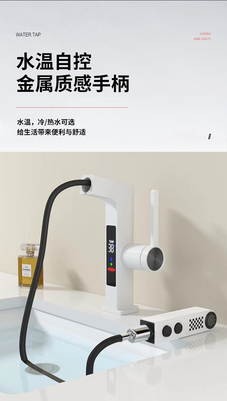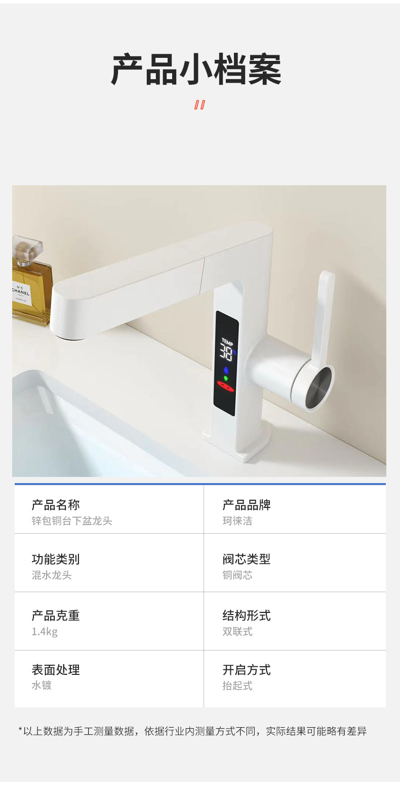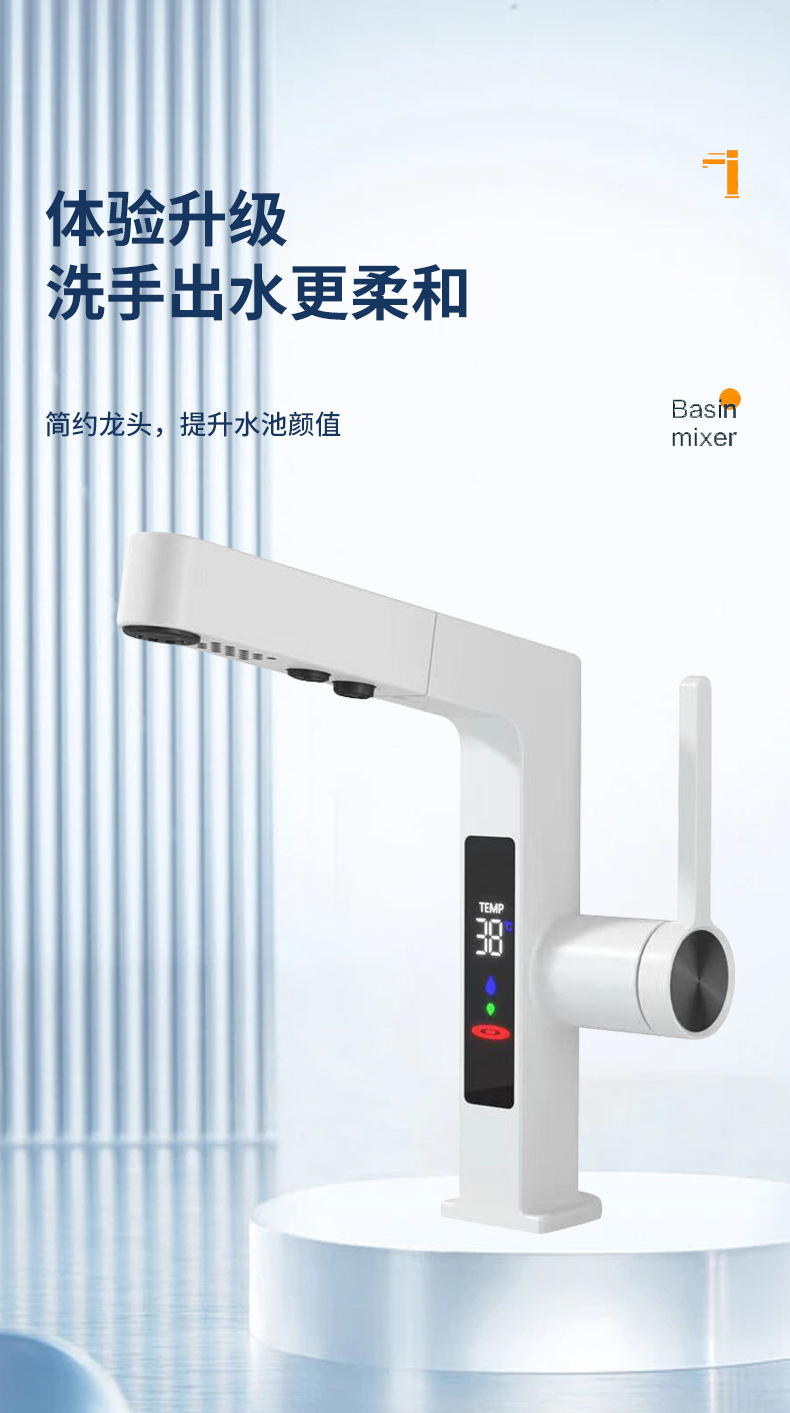 クロスボーダー全銅デジタル表示洗面器冷熱蛇口ホテルマンショントイレ洗面台下単孔蛇口