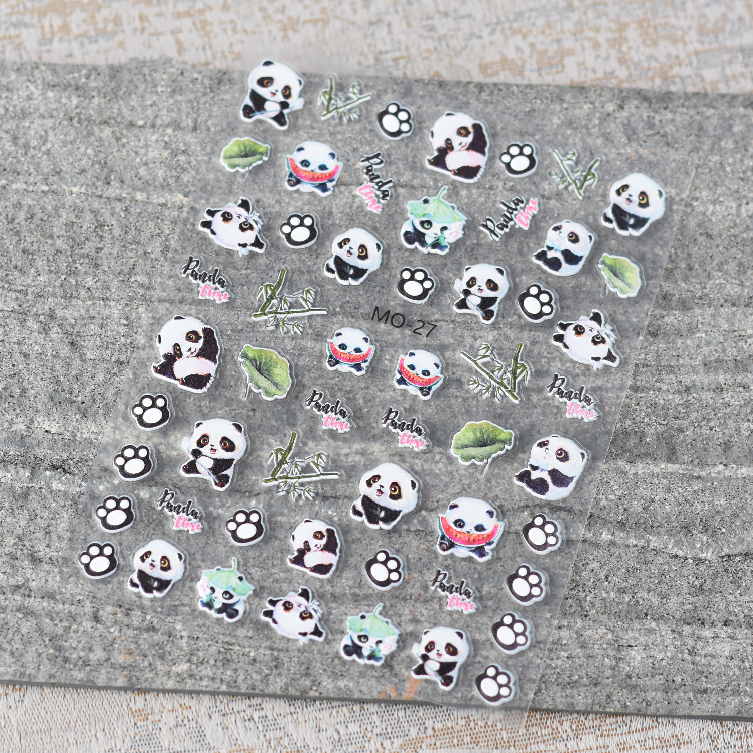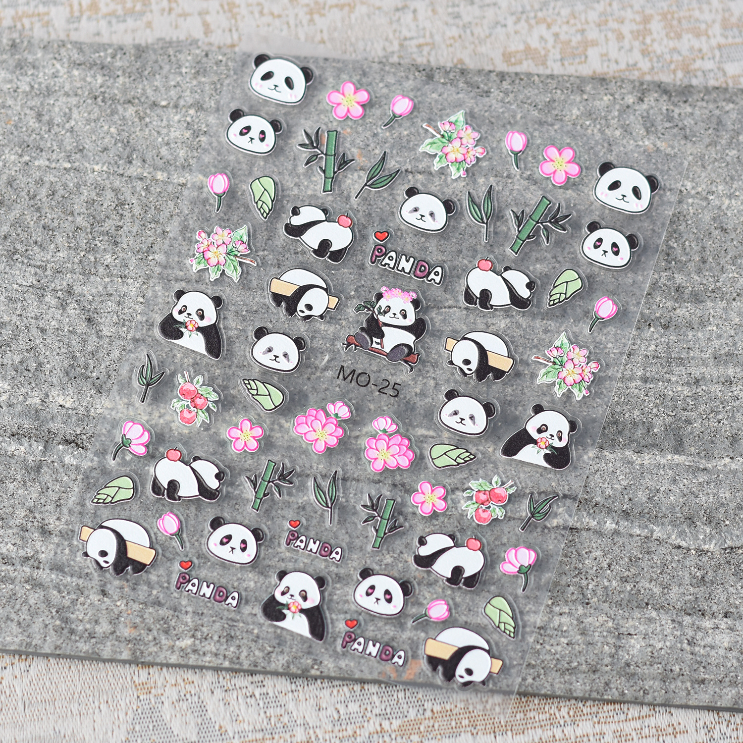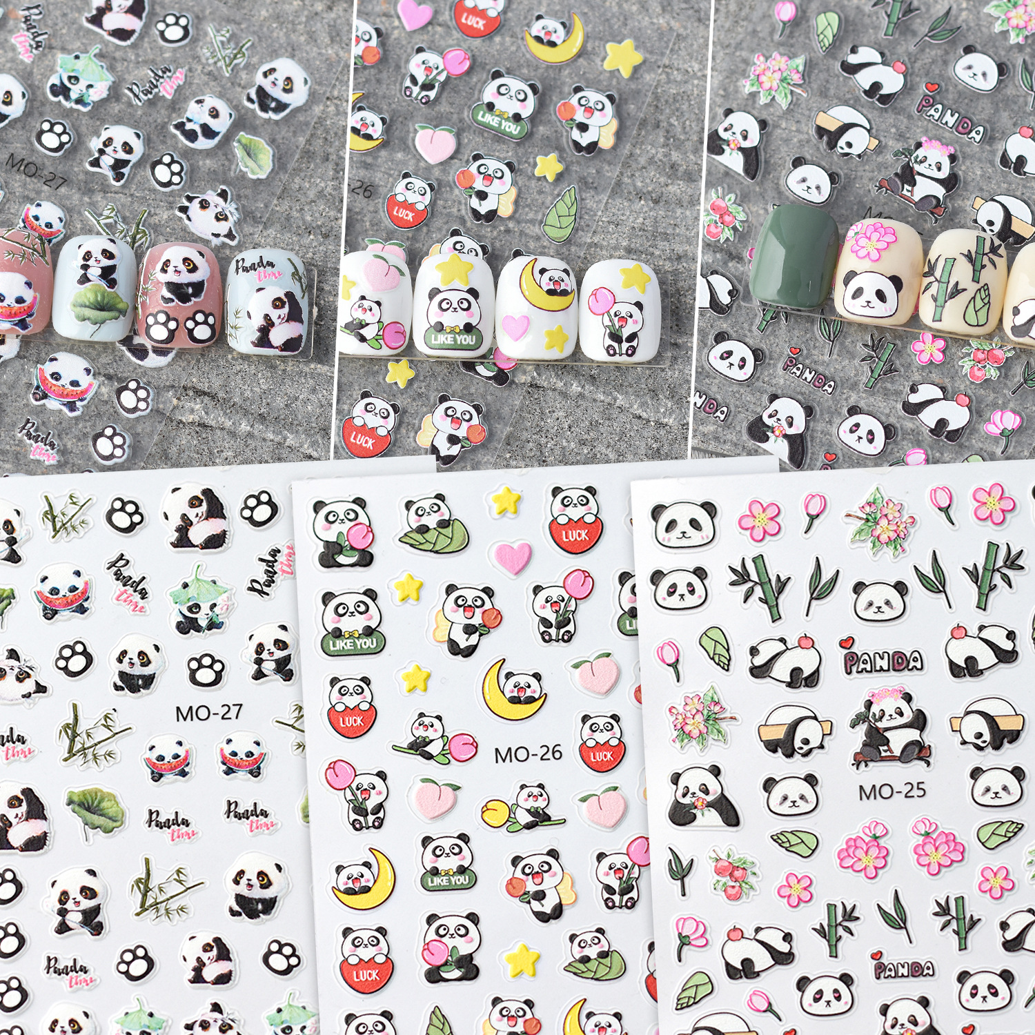 Mosr漫画パンダネイルステッカー5d立体かわいい風装飾小さなパターン粘着性レリーフ爪ステッカー卸売
