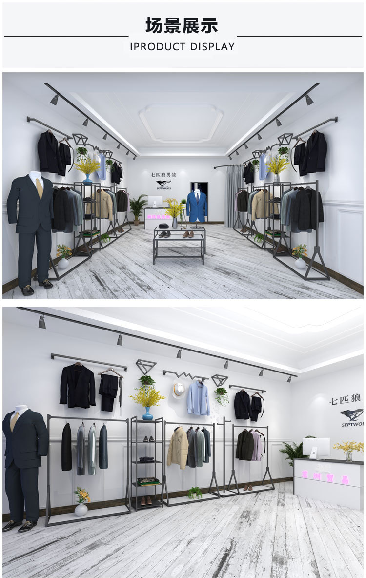 鉄芸服装店展示棚床置き式組み合わせウェディングドレスハンガー男女棚側掛け棚シンプル陳列棚