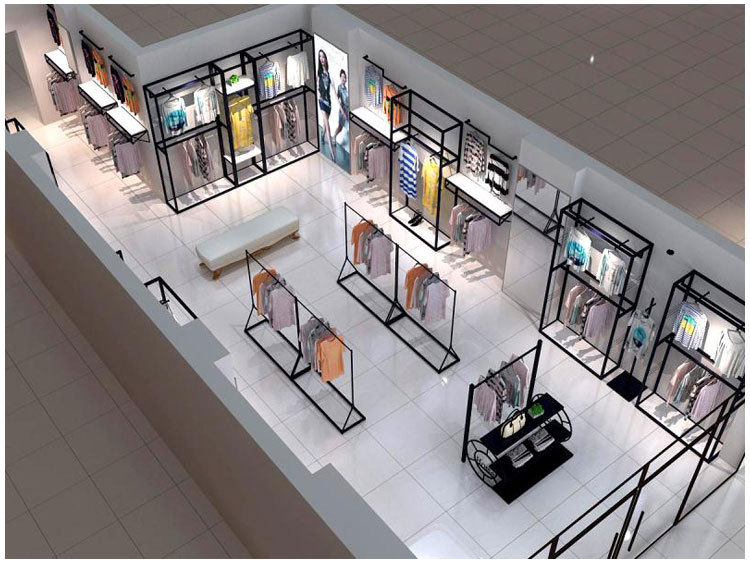 衣料品店ディスプレイラック、床置き婦人服ハンガー、鉄製衣料品棚、中島ラック、衣類・帽子ラック、カスタムメイド