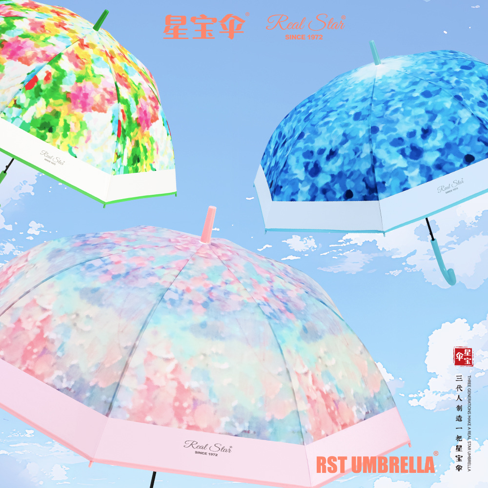 【クロスボーダー】星宝新品透明傘成人児童花版カラー傘欧米風プラスチック長傘