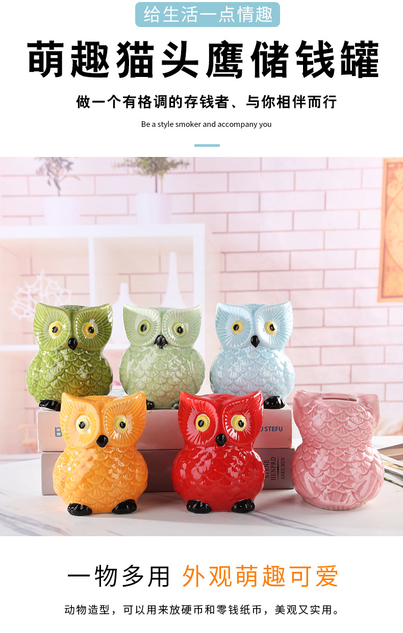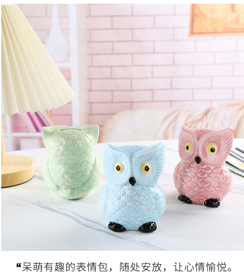 クリエイティブ子供貯金箱かわいい漫画フクロウセラミック貯金箱誕生日プレゼント装飾品個性置物