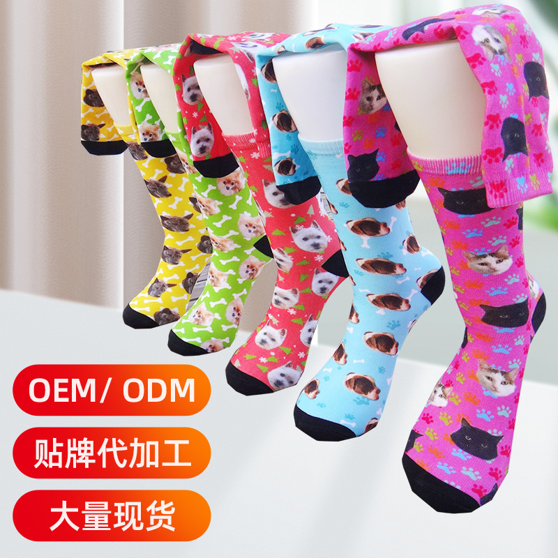 欧美ebay亚马逊彩色360度印花定 做袜子人头中筒袜宠物头像DIY男