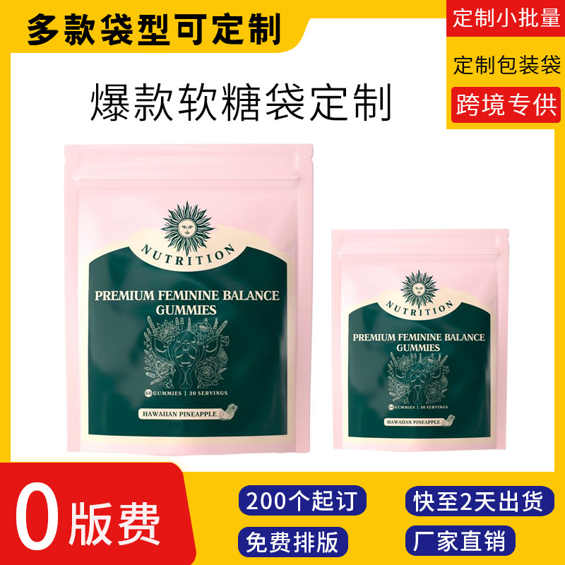 三辺シール複合包装袋カスタムグミスナックアルミ箔ジッパーバッググミキャンディ包装袋プラスチックスタンドアップバッグ