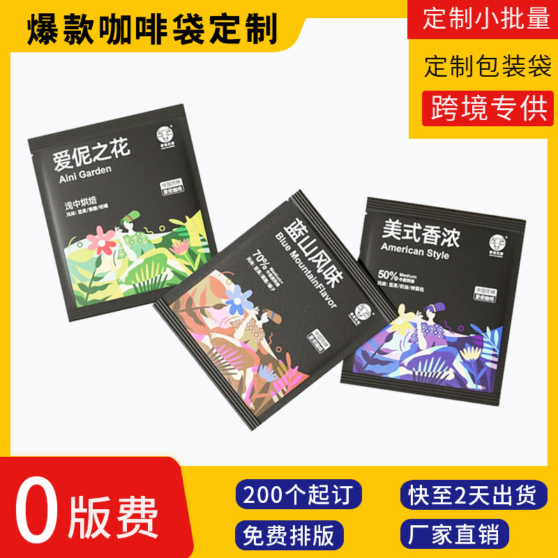 無料印刷カスタム八辺封包装袋デジタルカラーコーヒー包装袋四辺封包装袋