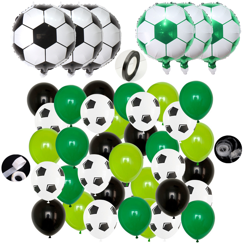 国境を越えたアマゾンサッカーのテーマ風船セット黒と白の緑のアルミ膜風船パーティー装飾品の配置