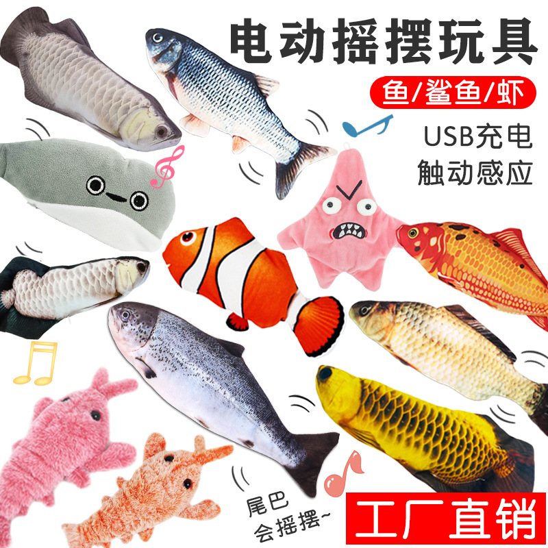 仿真电动鱼逗猫跳动的鱼跳跳虾毛绒玩具USB充电直销