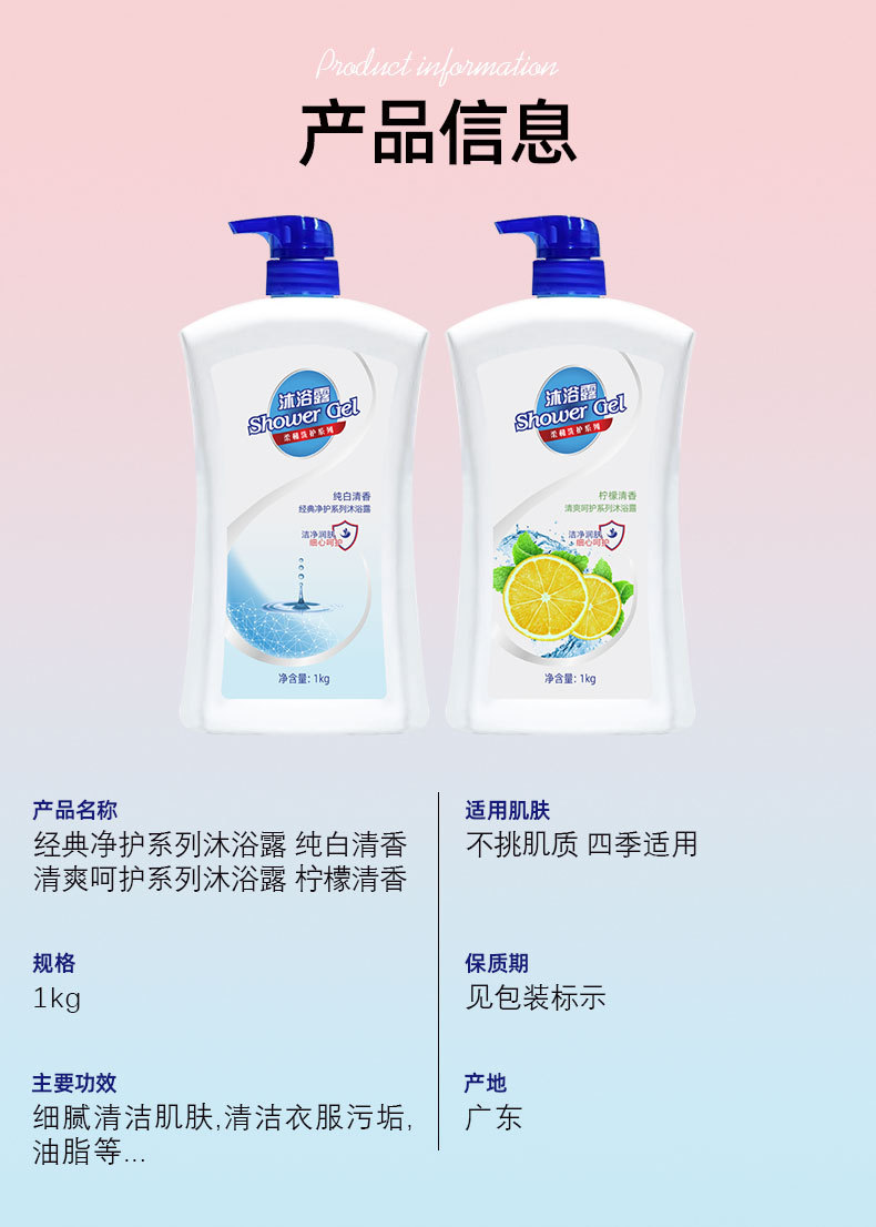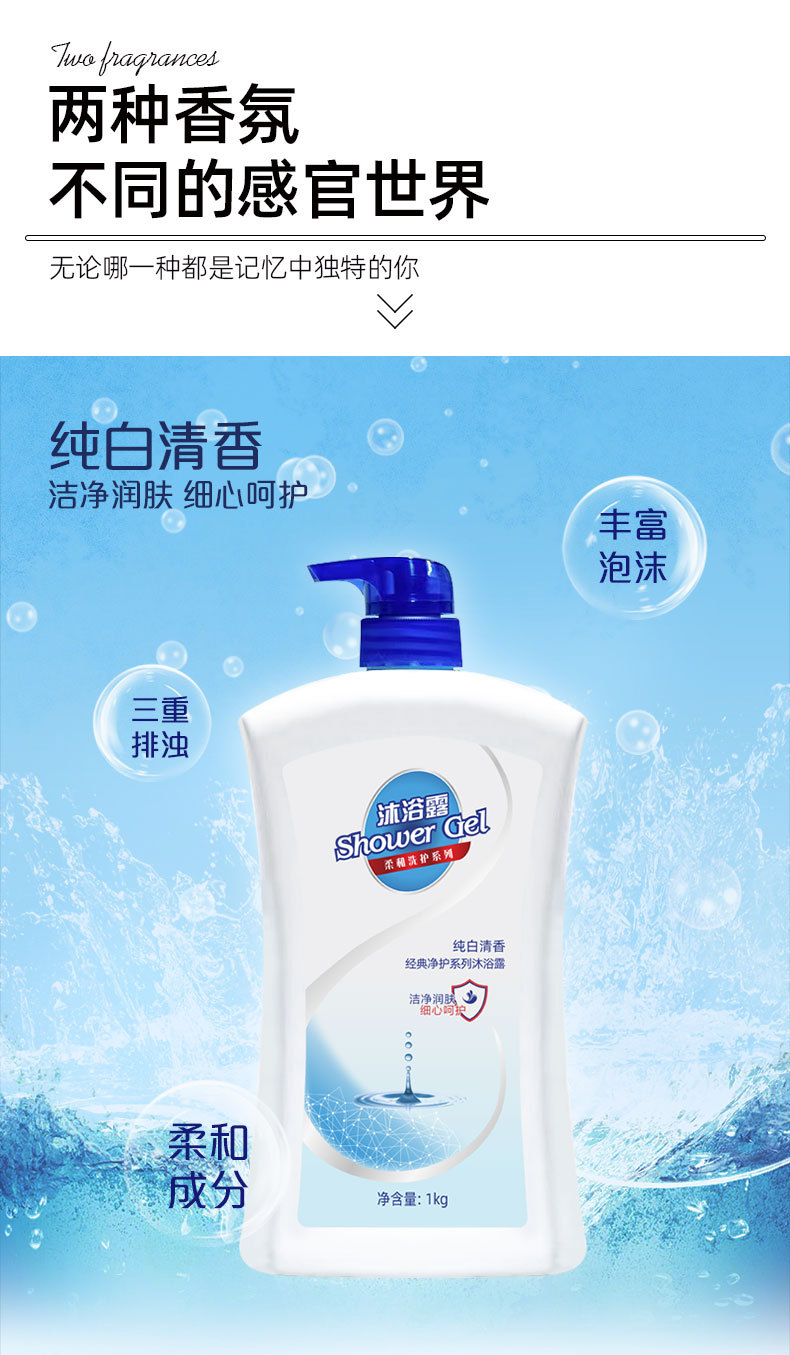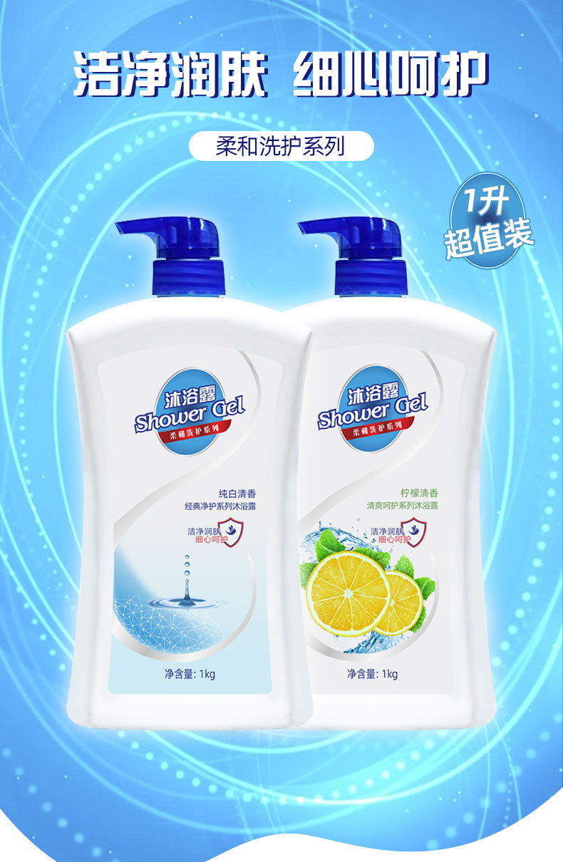 全新佳白大瓶沐浴露1000毫升纯白柠檬清香沐浴乳持久留香一件代发