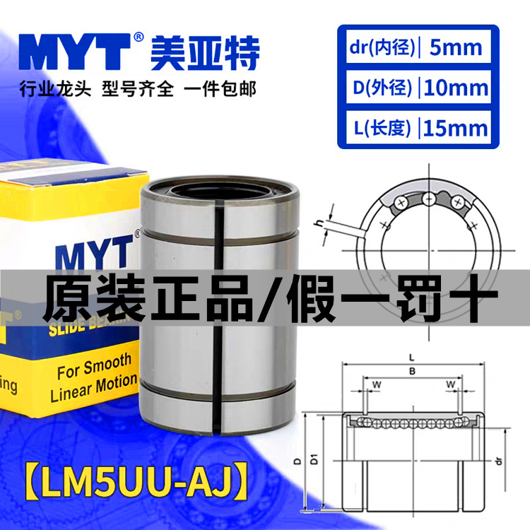 ミヤトMYTリニアベアリング隙間調整型LM5UU-AJベアリング滑り延長ボールガイド
