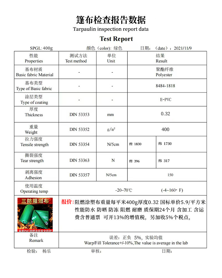 400g厚手PVCコーティング防水シート、耐油布、難燃性、防火性、日焼け止め帆布、三防布