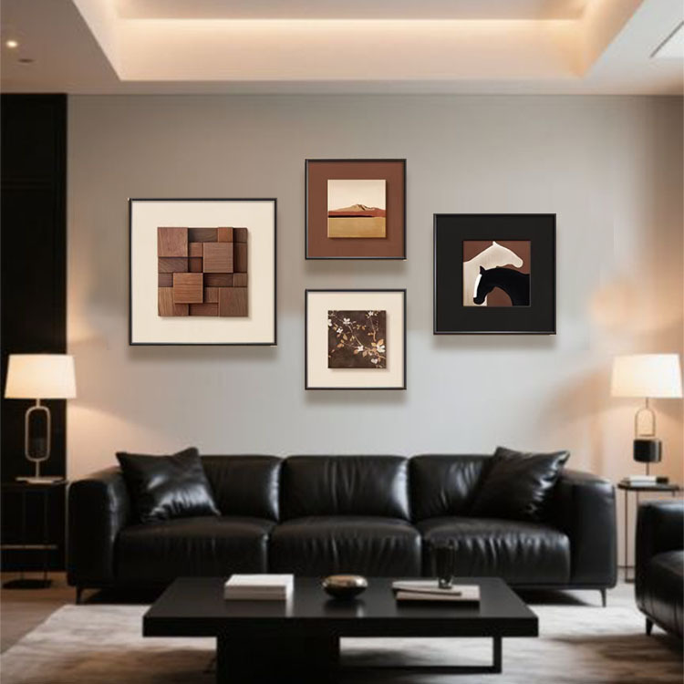 中古风挂画法式复古组合客厅装饰画立体砂岩高级感沙发背景墙壁画