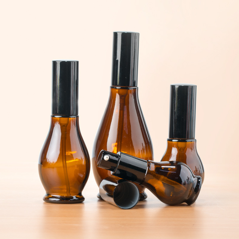 50 ミリリットル詰め替えボトル茶ひょうたんエッセンシャルオイルボトルプレスポンプローションボトルスプレーボトル化粧品ガラス詰め替えボトル