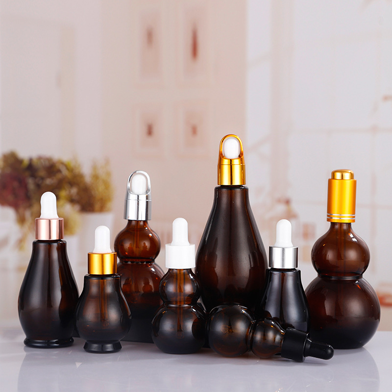 エッセンシャルオイルボトル茶色30ml遮光ガラス単ひょうたん香水瓶スポイト乳液分注瓶スプレー瓶卸売り可能